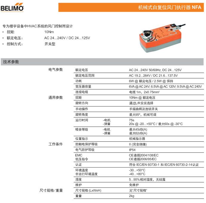 • NFA機(jī)械式自復(fù)位風(fēng)門執(zhí)行器