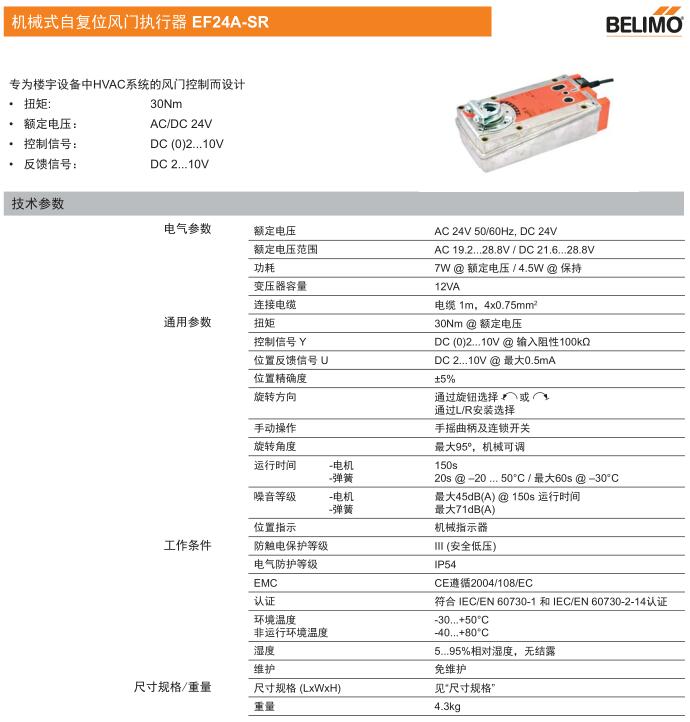 • EF24A機械式自復(fù)位風(fēng)門執(zhí)行器
