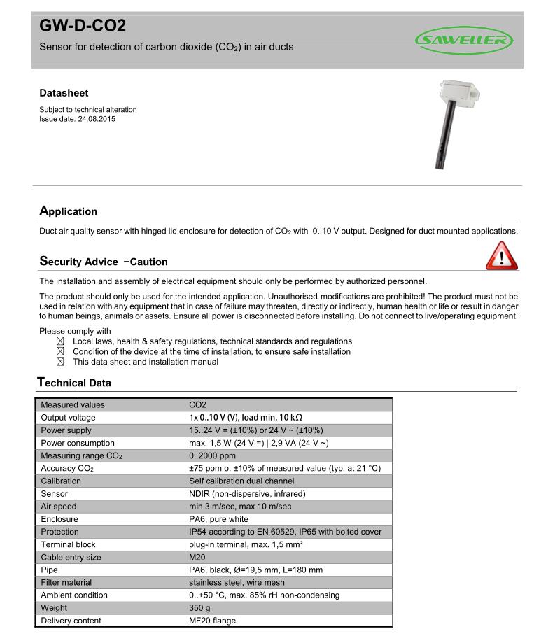 • 風(fēng)管二氧化碳傳感器GW-D-CO2