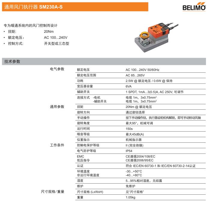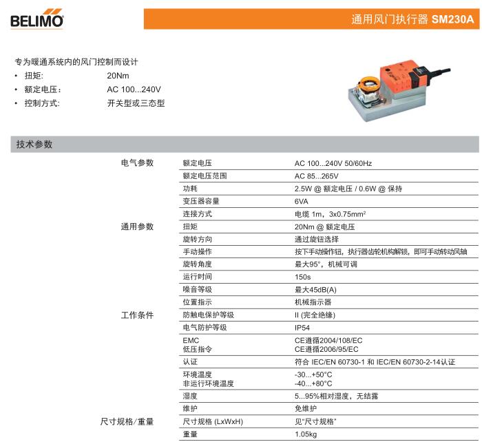 • SM230A通用風(fēng)門(mén)執(zhí)行器